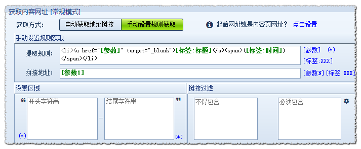 它有2种方式:a.自动获取地址链接 b.手动设置规则获取。